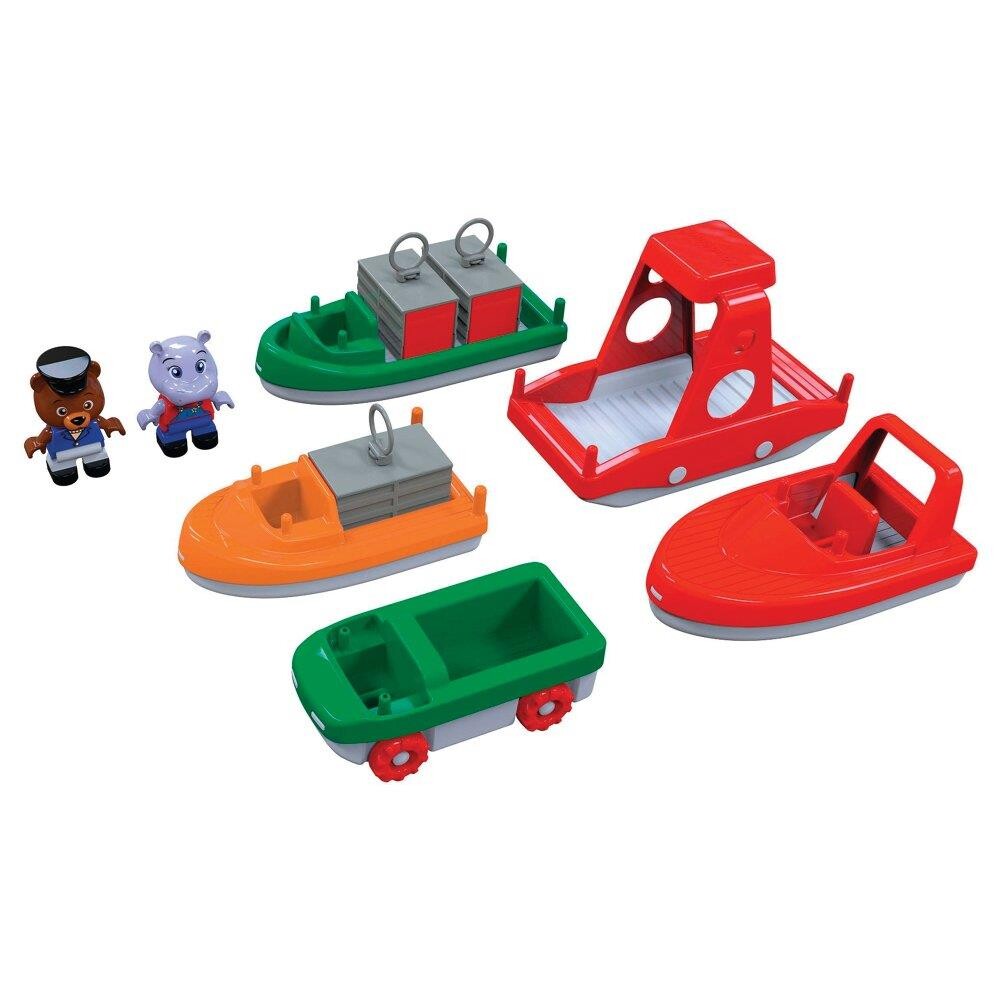 Både til aquaplay kanalsystemer – Sæt med 6 fartøjer og 2 figurer. Af polypropylenplast. Fra 3 år.