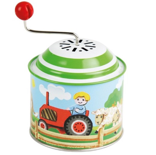 Retro spilledåse fra tyske Bolz. Når man drejer håndtaget høres melodien quotJens Hansens bondegårdquot. Diameter. 7.5cm Egnet til børn fra 12 måneder BOLZ – Traditionelt legetøj siden 1880, At lege med snurretop har en lang tradition og går tilbage ti