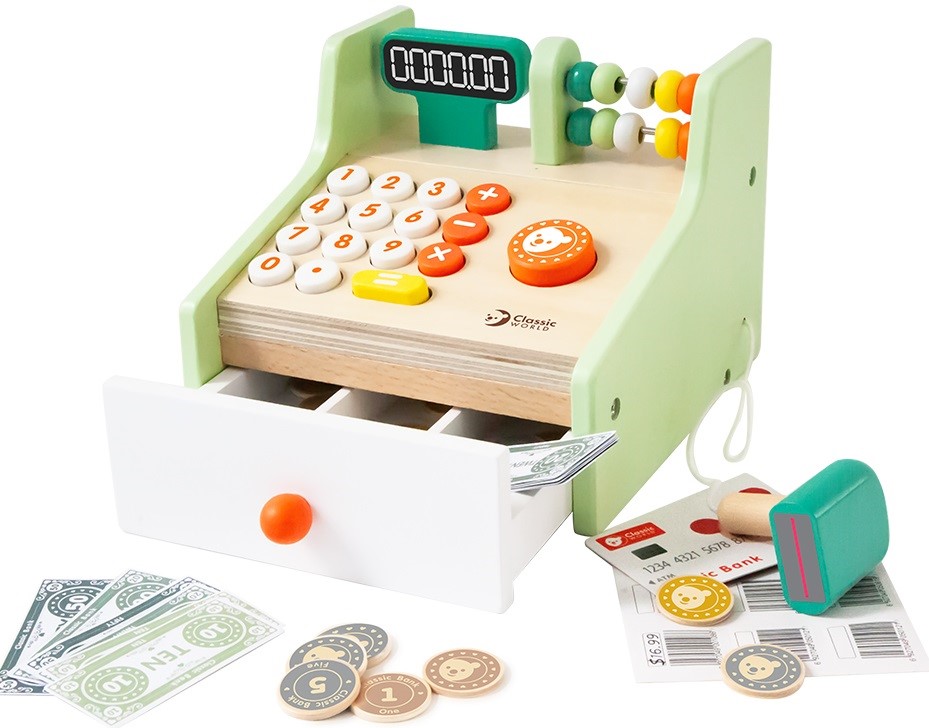 Produkt id. Classic-world-legetøjs-kasseapparat-med-tilbehør-træ 6927049054167