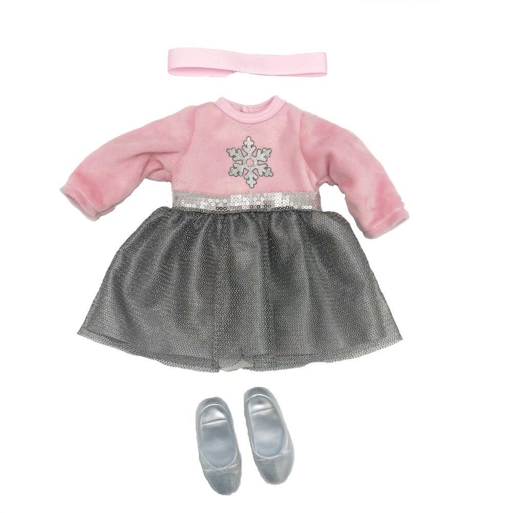 Smart dukketøj der passer til Dream Hearts dukkerne. Derudover kan tøjet også passe andre dukker i cirka str. 40-45 cm. Sættet består af – Lyserød pandebånd – Grålyserød bluse – Lyserød glimmer nederdel – Hvide underbukser – Lyserøde kondisko Kan hånd