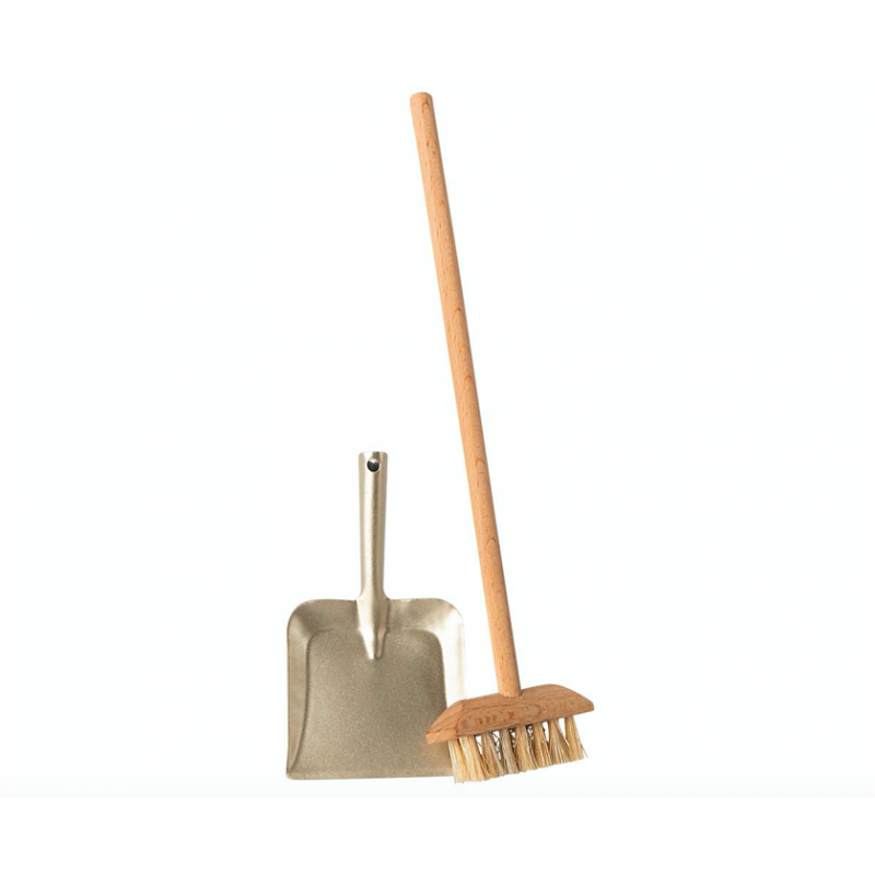 Højde. 15 cmMed dette fine fejesæt er de mindre klar til, at rydde op. Kostesættet kommer med en fejebakke i en flot varm sølv farve sammen med en kost i træ.