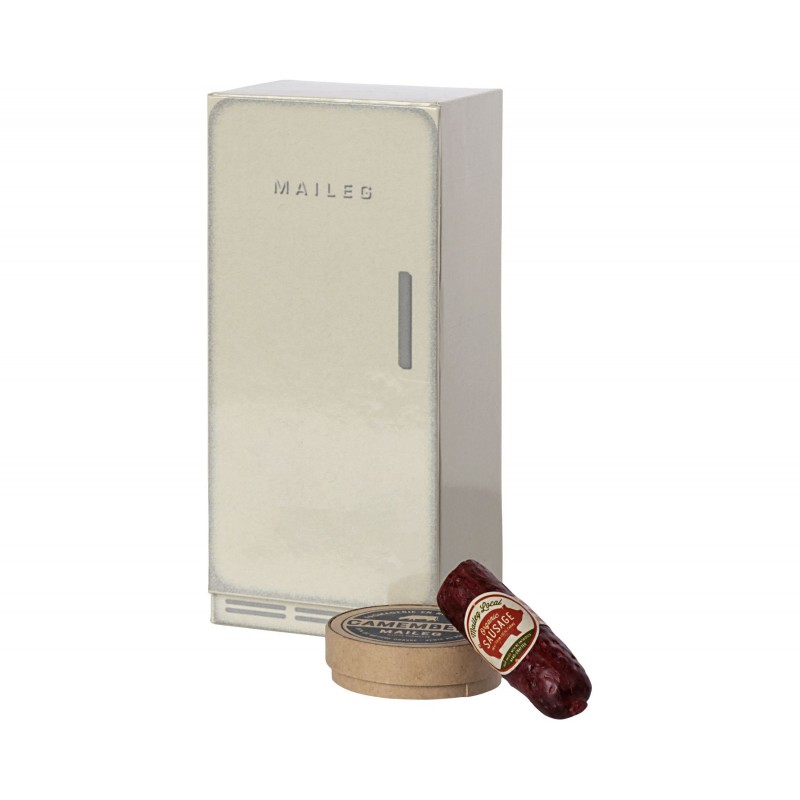 Mål. H. 13.5 B. 6 cm. Materiale.Metal. PolyresinSuper fintkøleskab fra Maileg. Køleskabet er lavet af papog passer til dine mus og musenes hjem. Køleskabet er lavetmed lidt retro inspiration. Som Maileg netop er gode til. Med til køleskabet fø