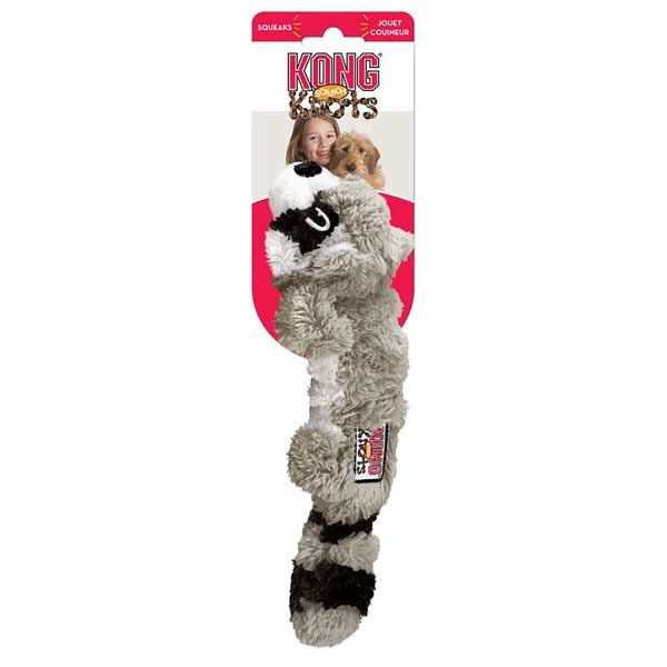 KONG Scrunch Knots vaskebjørn realistisk og fyldfrit legetøj til aktiv legEr din hund vild med, at ruske. Tygge og jage, Så er KONG Scrunch Knots Raccoon det perfekte legetøj Det realistiske design og de indvendige knuder stimulerer din hunds naturlige
