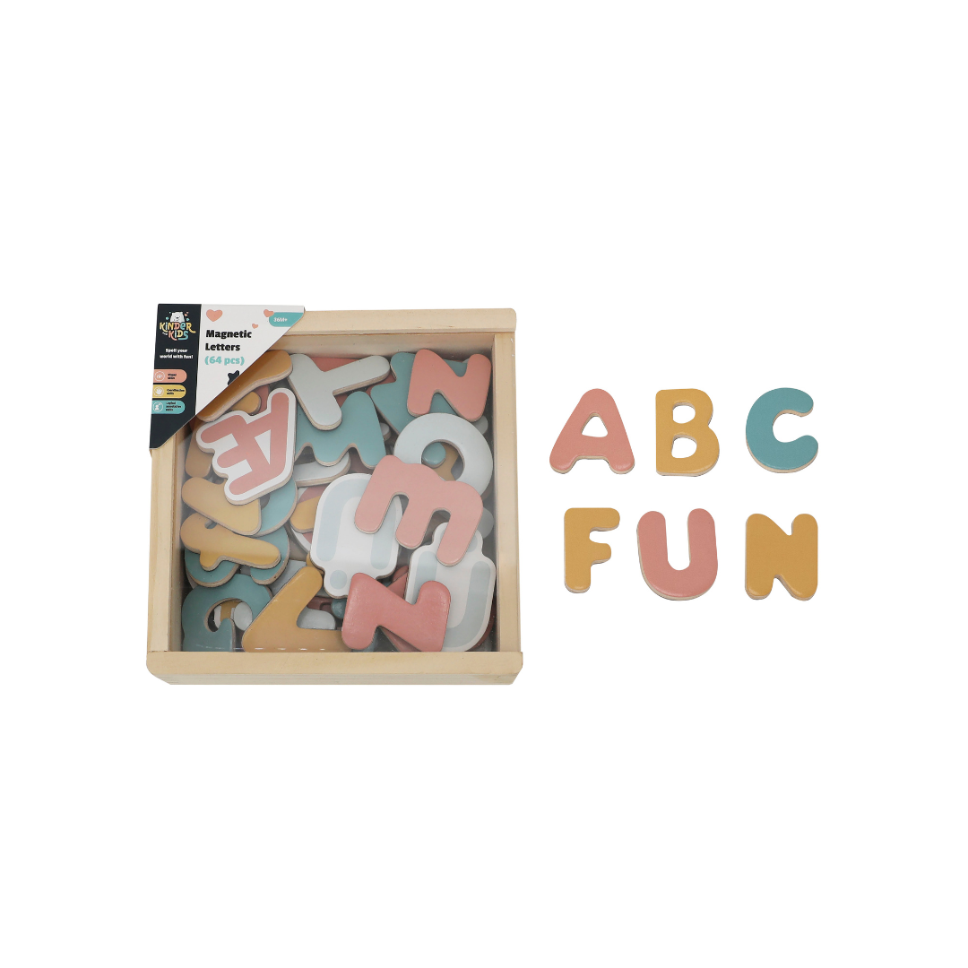 Et kreativt og lærerigt sæt med 64 magnetiske bogstaver i smukke. Afdæmpede farver. Perfekt til leg og læring. Hvor børn kan øve alfabetet. Danne ord og skrive små beskeder på køleskabet. Whiteboardet eller også andre magnetiske overflader. Bogstaverne levere