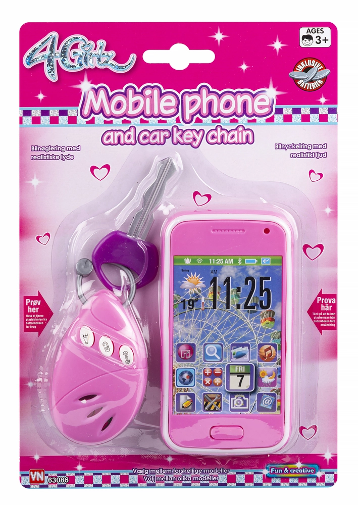 4-Girlz mobiltelefon og bilnøglesæt Med lyde. Inkl. 4 stk. Knapcellebatterier.