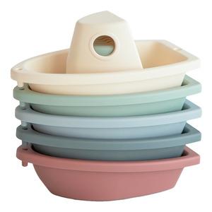Mushie Bade Både Original er stabelbare legetøjsbåde i bløde farver. Der kan flyde i vandet Sæt sejl med Mushies stabelbare badebåde. Der sætter gang i selvstændig leg. Bådene kommer i et sæt med 5 plastikbåde i forskellige farver. Der kan flyde på vande