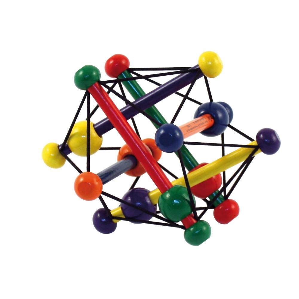 Skwish ranglen er patenteret for sin unikke udformning med elastiksnore. Trækugler og -pinde. Den kan trykkes sammen og kommer altid tilbage til udgangsformen. Den stimulerer flere af barnets sanser. Små baby hænder kan let få fat om de runde kugler. Og s