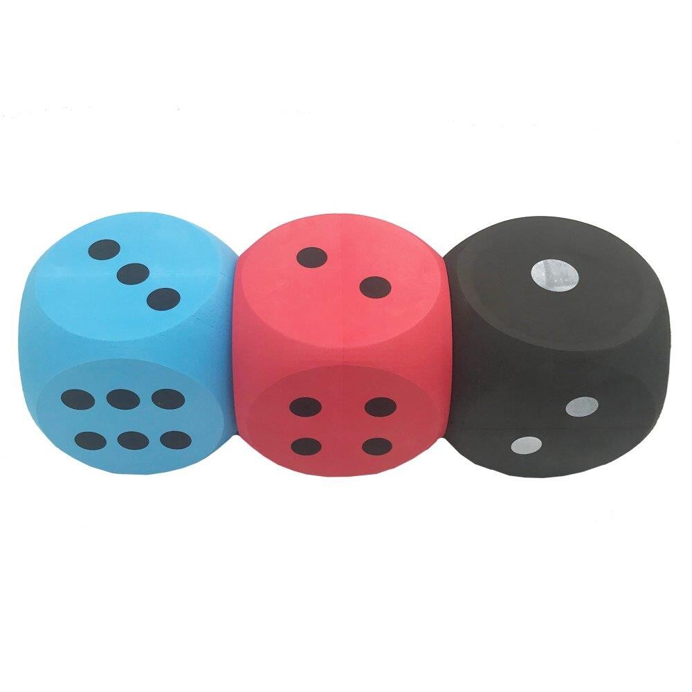 Skumterninger til store spil ude såvel som inde. Reducerer støjniveauet indenfor., Da de ikke larmer, så meget som almindelige terninger. NB. Leveres i assorteredeforskellige farver. Størrelse. 14 x 14 x 14 cm Vægt. Ca. 100 gram Farve. Assorteret An